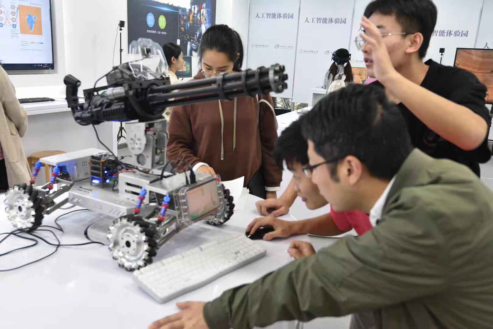 创业园入驻流程,与入驻园区团队交流学习。最后,走入人工智能体验园,体验一系列人工智能技术以及人工智能传感小车、传感机器人以及AI围棋机器人。