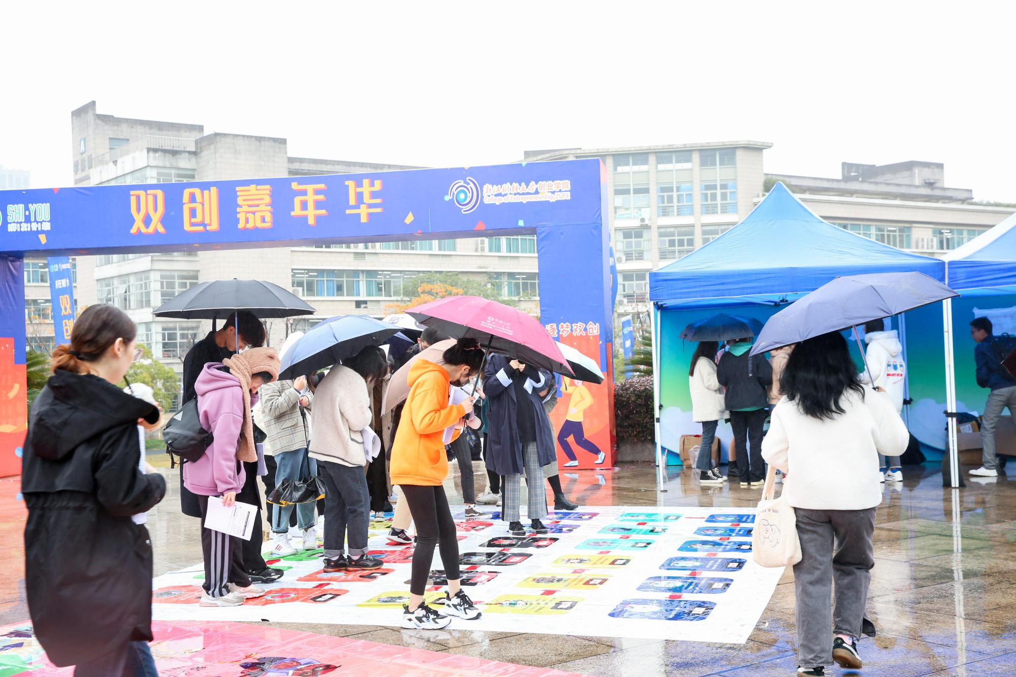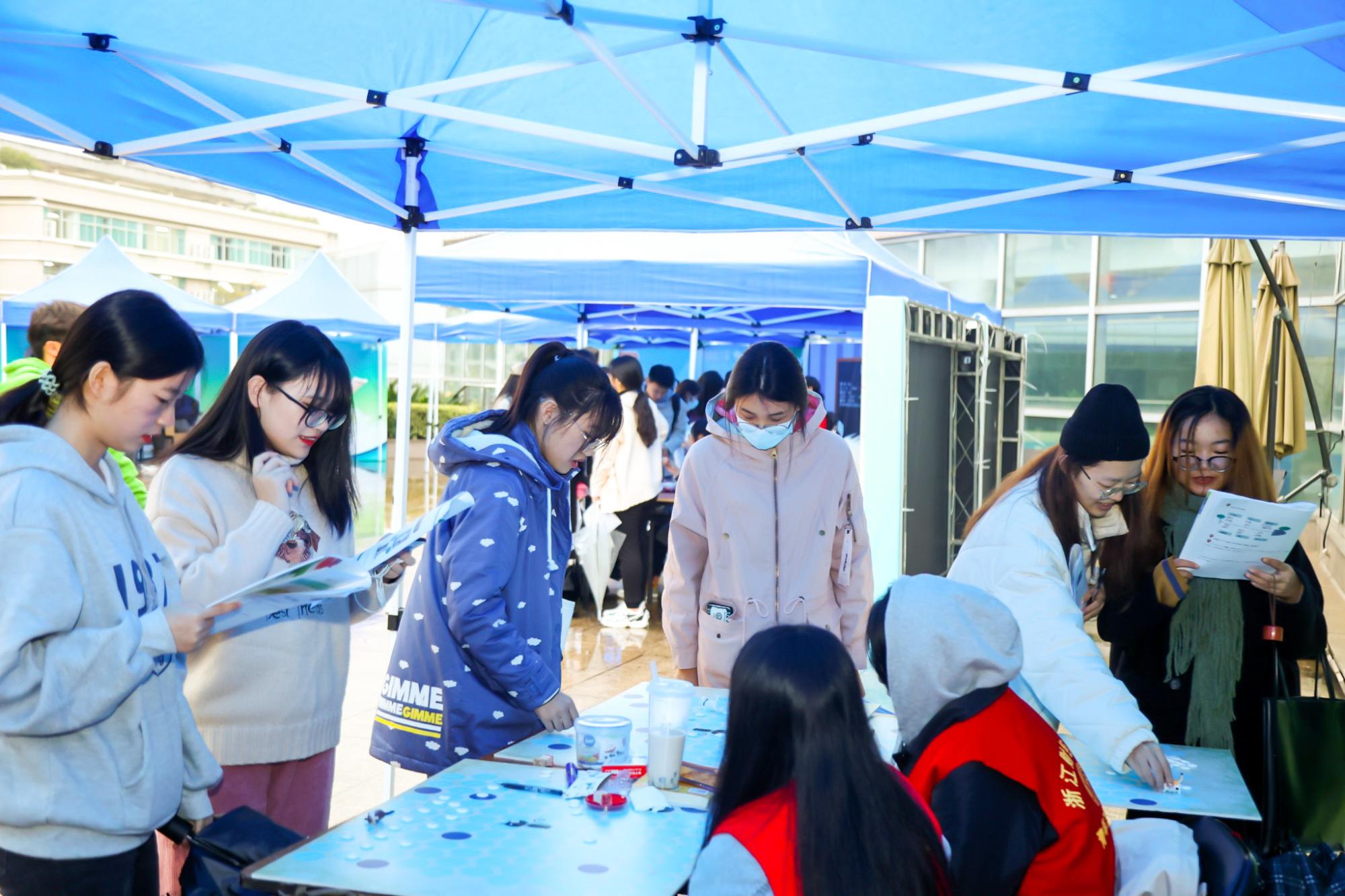 首届双创嘉年华活动在文化中心外广场举行。本次双创嘉年华活动为期5天,招募163名学生志愿者,接待了来自各学院的6000余名同学。