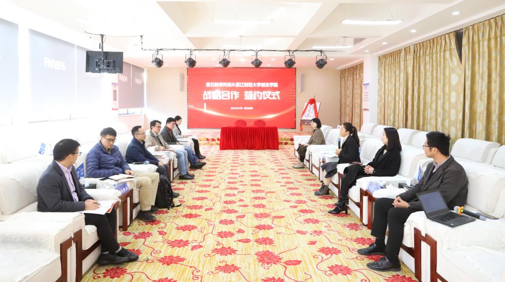 双创教育基本情况,他指出此次学院与盘石教育科技合作,是实现产教融合的重要一步,能够让学生更加深入了解数字经济,把学生培养成优秀的数字经济领域人才。代晴晴介绍了磐石集团发展情况,她表示盘石集团将围绕数字经济职业人才的培养与黄色漫画