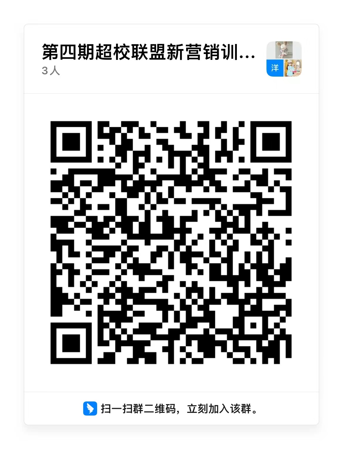 《第四期超校联盟新营销训练营负责人》钉钉群二维码: