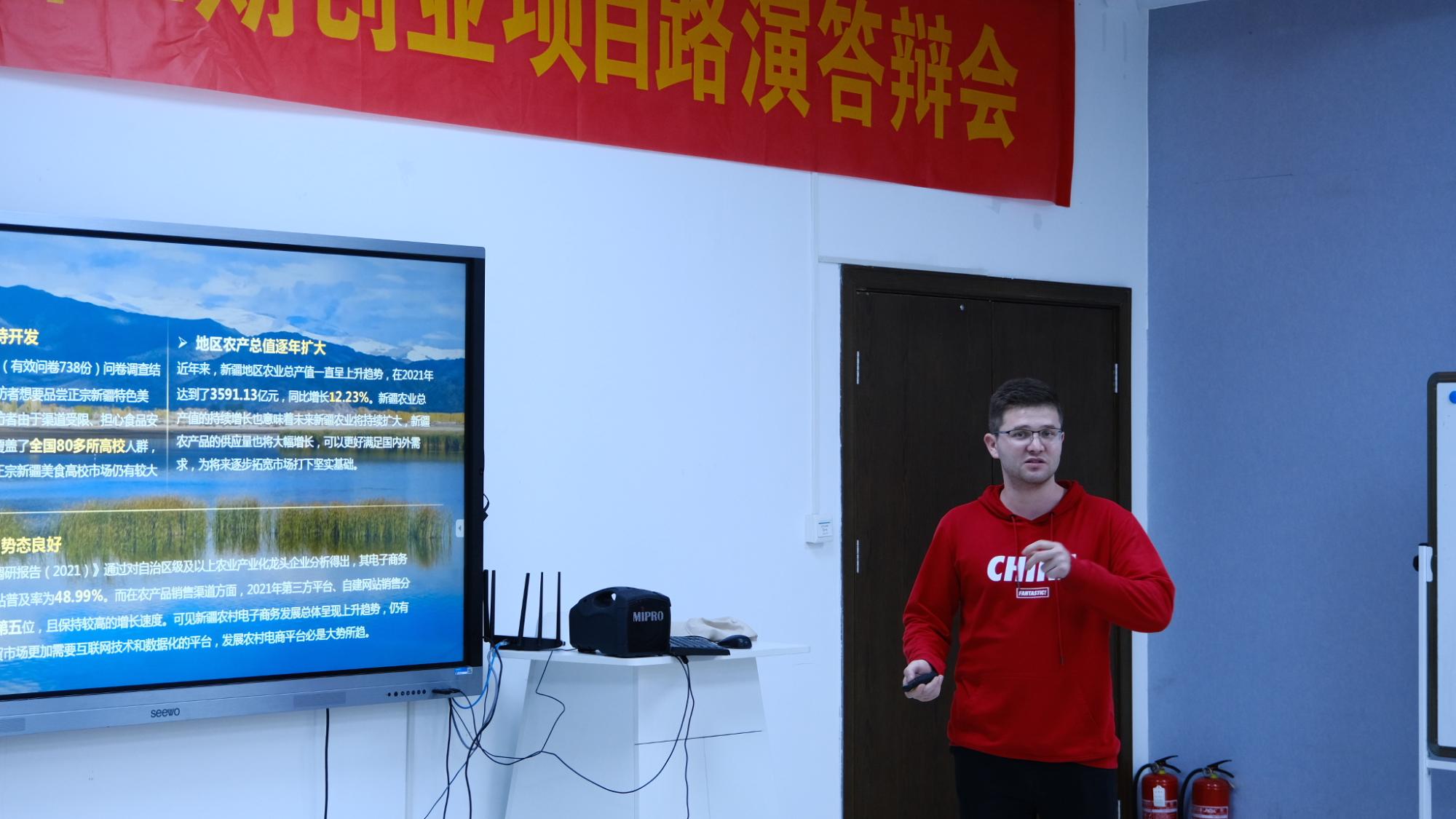 本次路演答辩会由“路演环节”与“评委提问环节”两个部分组成。在路演环节,每个创业团队通过ppt演示讲解的形式展示了本组的项目介绍、团队介绍、运营策略、竞争策略等相关要点信息。在评委提问环节,两位评委老师针对创业团队的展示,提出一些深入性的问题,帮助创业团队补充内容、明确商业模式。