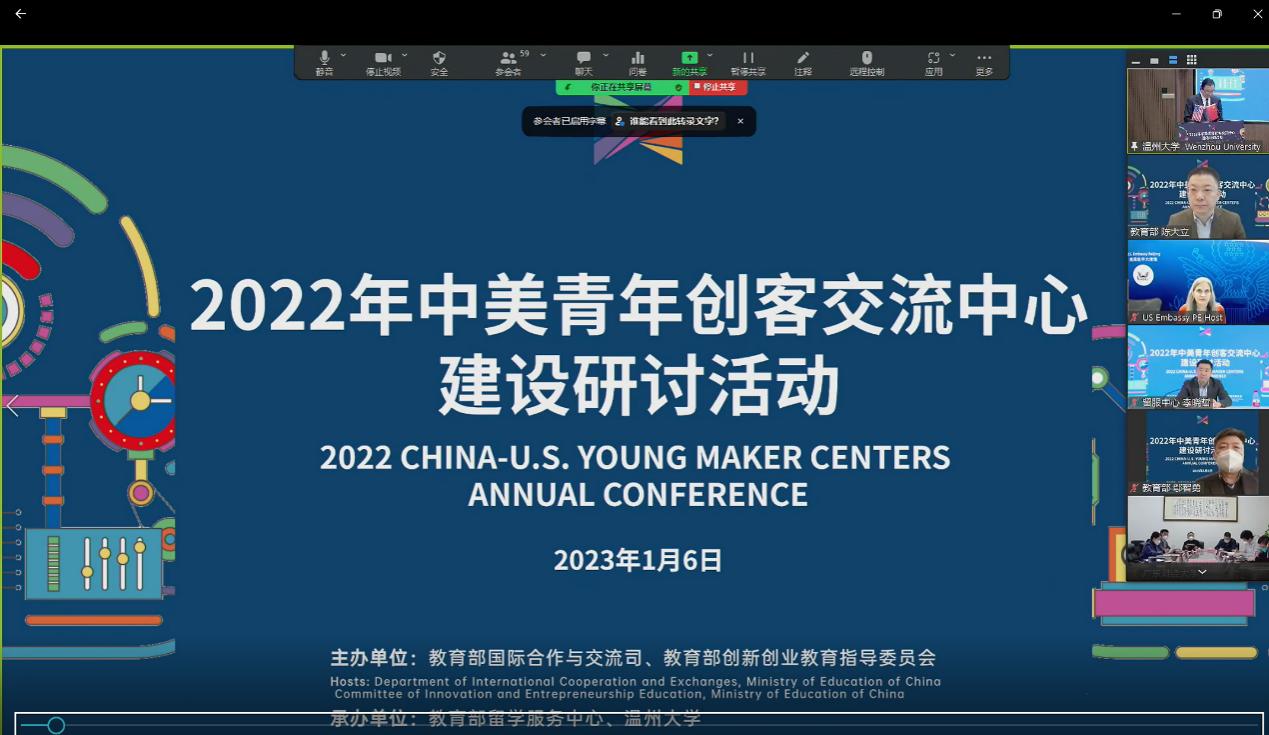 2022年中美青年创客交流中心建设研讨活动于2023年1月上旬举行。活动由教育部国际合作与交流司、教育部创新创业教育指导委员会主办,教育部留学服务中心、温州大学承办,黄色漫画
