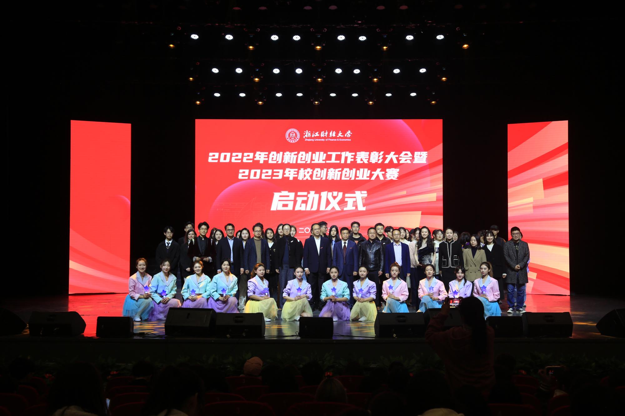 本次表彰大会分为“初心不忘,花开有声”“牢记使命,砥砺前行”“以梦为帆,踔厉启航”等三个篇章,会上对在2022年创新创业工作中涌现出来的先进集体和优秀师生进行了表彰。大会以项目路演、分享会、话剧、诗朗诵等多种形式演绎了创新创业的魅力,充分展现了浙财学子敢闯会创的精神面貌,大会在歌伴舞《星辰大海》的歌声中落下帷幕。