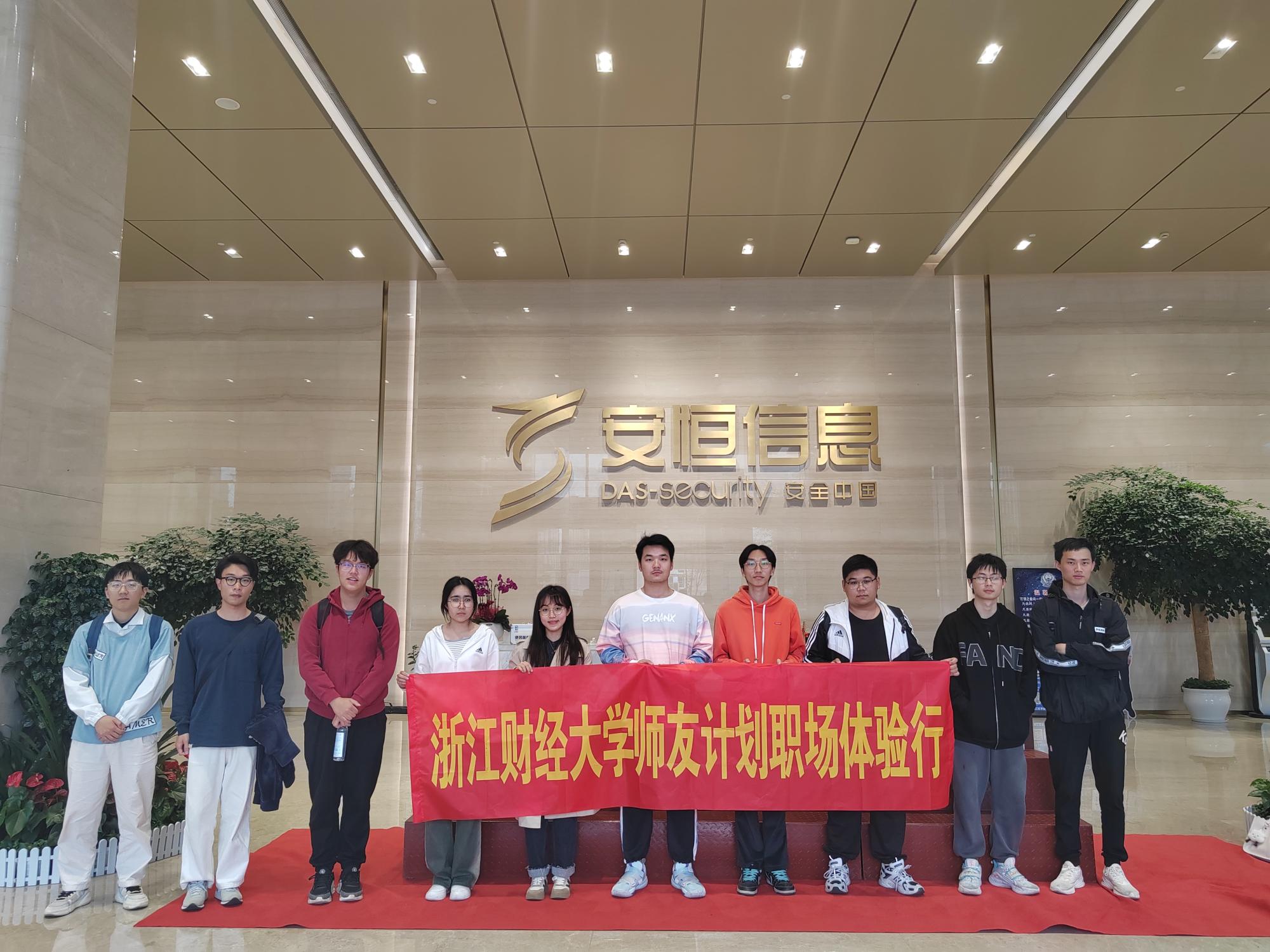 师友计划职场体验行活动来到安恒信息,同学们在工作人员的带领下,走进安恒大厦参观学习。